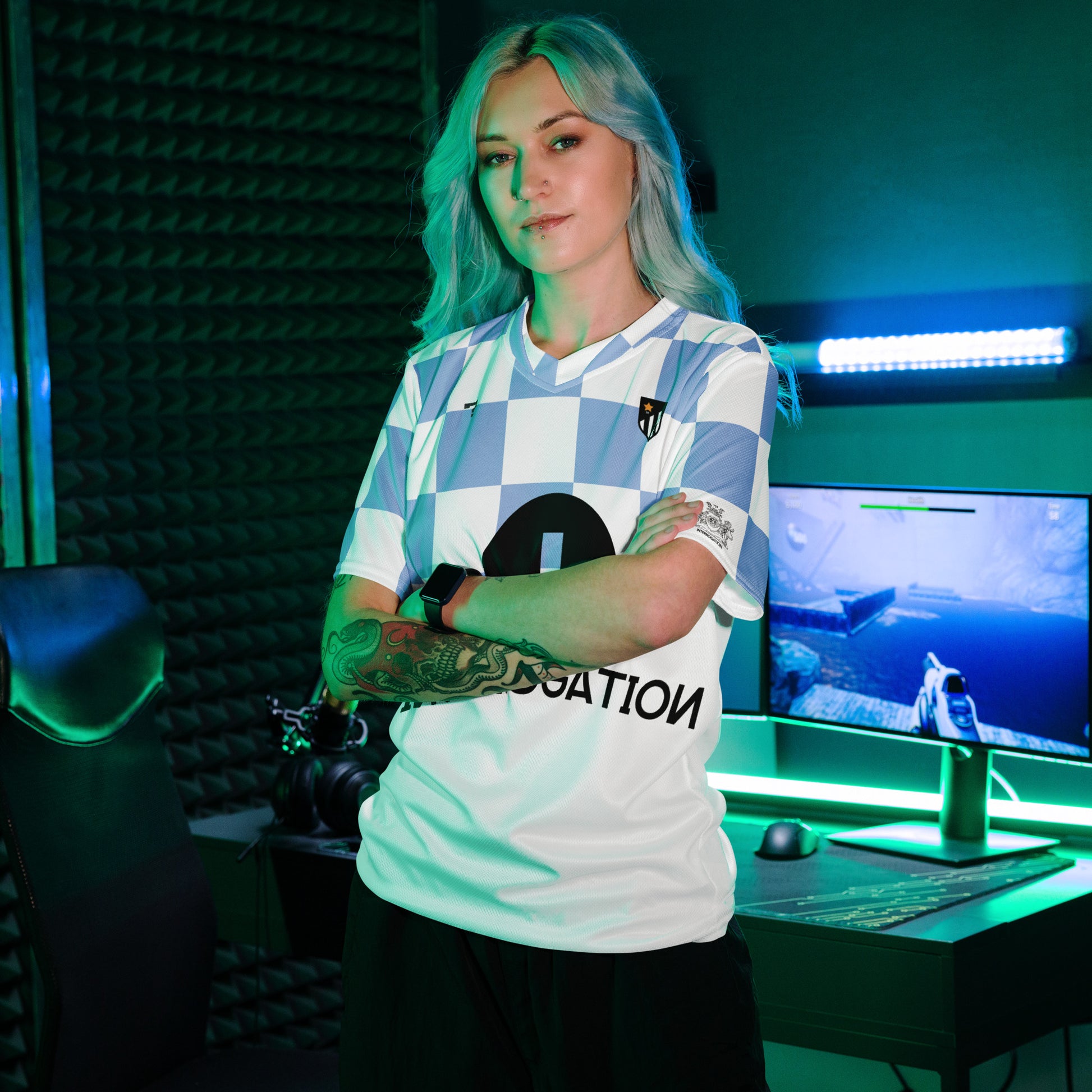 Looking for the perfect sports jersey? We have you covered—made of 100% recycled polyester fabric, this shirt is breathable, moisture-wicking, and has a double-layered v-neck collar that creates a premium look.
